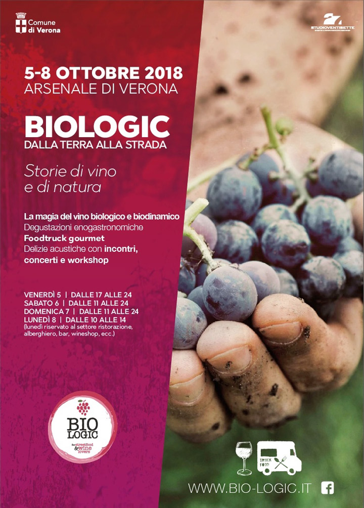A Verona si ricrea l’atmosfera di Biologic, la cittadella enogastronomica dedicata al vino bio e allo street food gourmet su food truck. Protagonisti dell’evento, sono i produttori di vino biologico, biodinamico e naturale che faranno degustare e conoscere al pubblico, oltre a degli ottimi vini. Il pubblico potrà incontrare i veri protagonisti che, tutti i giorni con cura, passione e amore, lavorano la terra per trasformare la materia prima in qualcosa di unico.